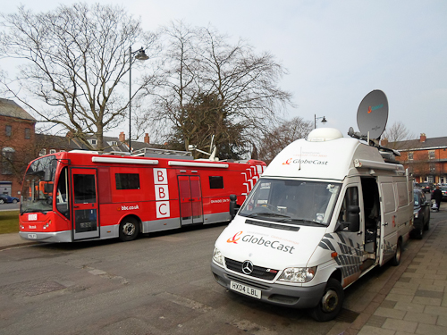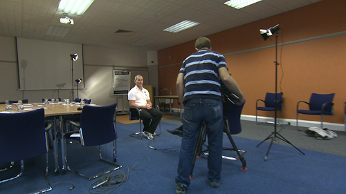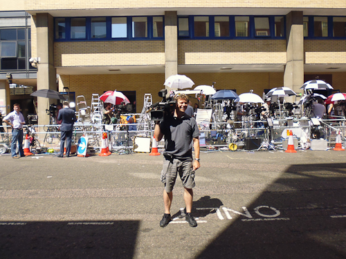 Filming for BBC News at Royal Marines Court Martial, Bulford