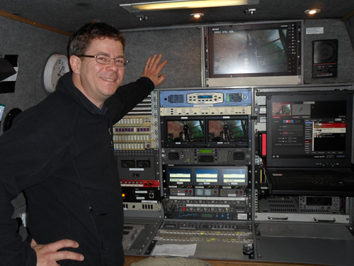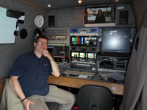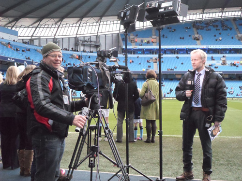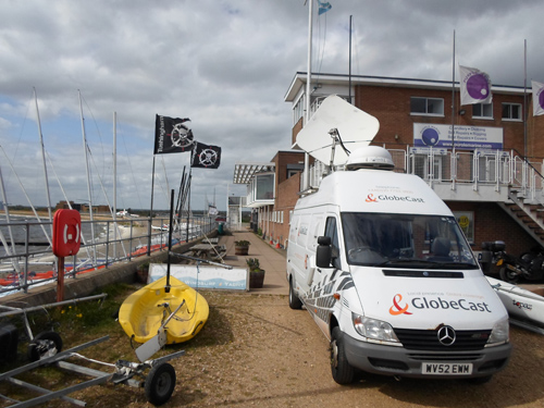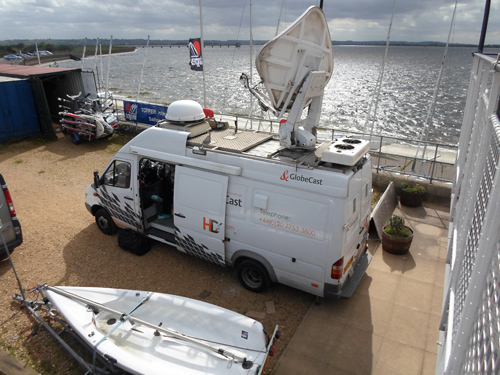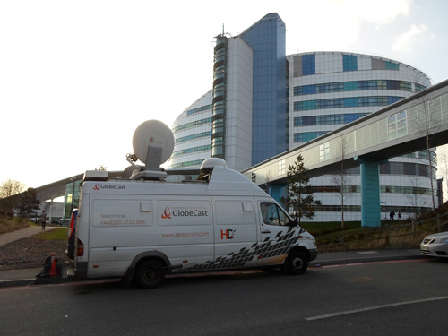 Satellite uplink for MUTV Under 21's game, AJ Bell Stadium, Manchester